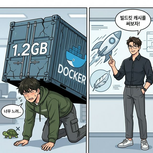 | Docker ๋น๋ | ๋งค๋ฒ ์ ์ฒด ๋ค์ด๋ก๋ | BuildKit ์บ์๋ก ์คํ ์ด ์ฌ์ฌ์ฉ |