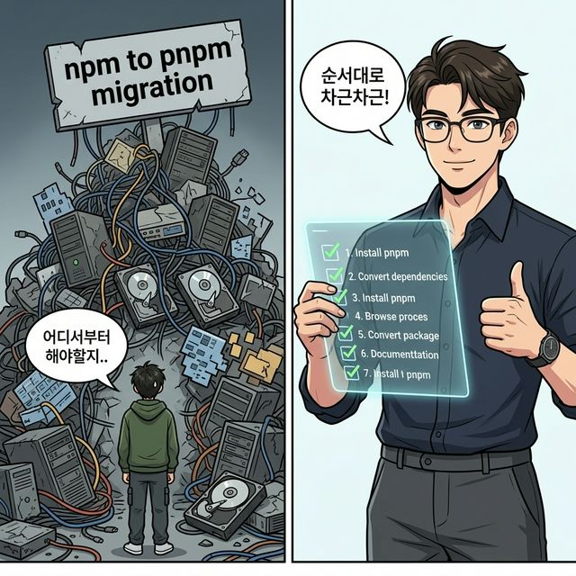 - npm/Yarn ํ๋ก์ ํธ๋ฅผ pnpm ์ผ๋ก ์์ ํ๊ฒ ์ ํํ๋ 7๋จ๊ณ ๋ฃจํด์ ์คํํ ์ ์๋ค